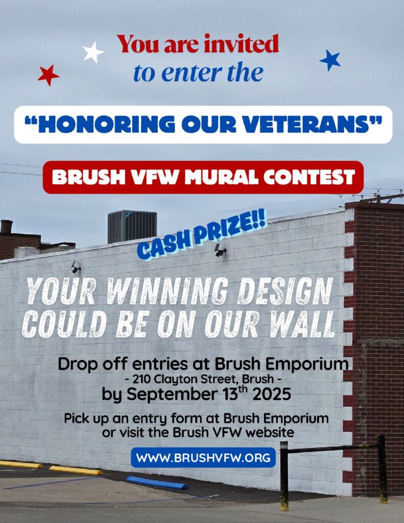 (210 Clayton Street, Brush, Colorado) during their business hours - Cash prize for winning entry ~ we have a $500 (minimum) prize pool